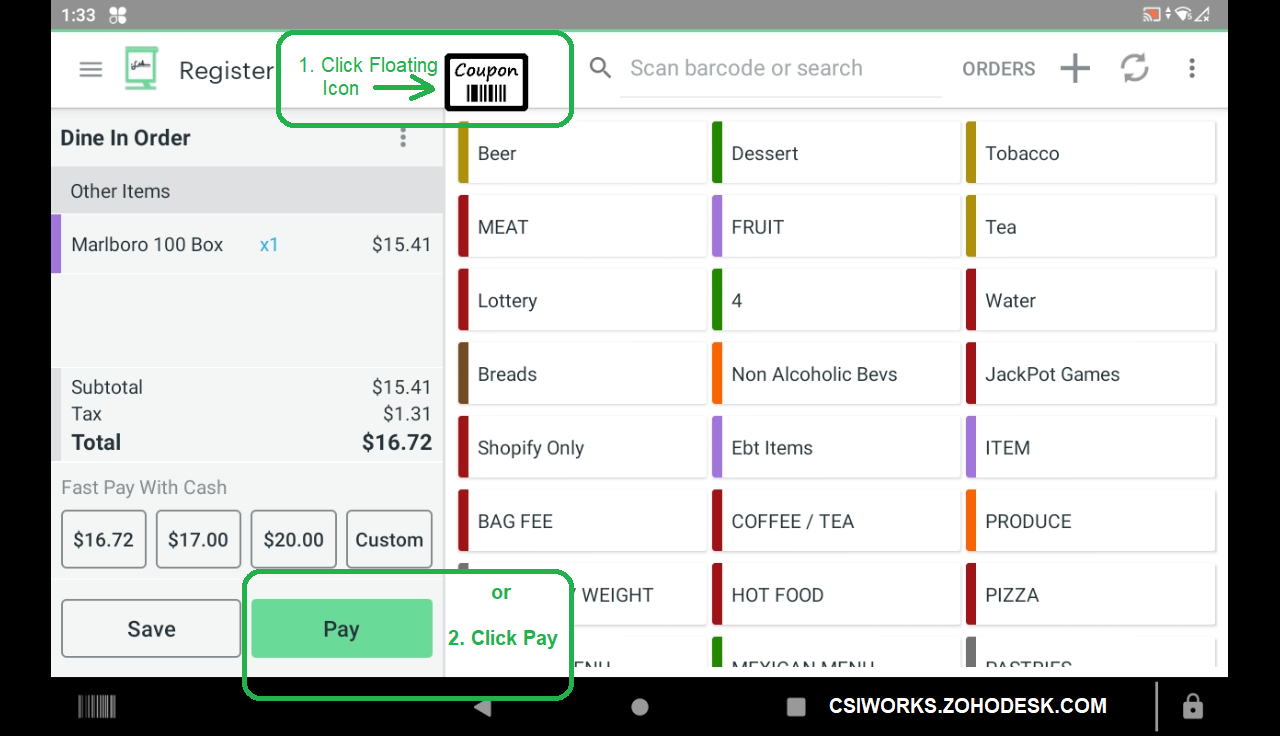 Products Discussed: Tobacco Shop Merchant: I want to know if you guys have an app where it can help me to apply paper or mobile coupons for Marlboro and Grizzly and Copenhagen on customers’ transactions. CSI Works: Yes, when you sign up for Tobacco ...